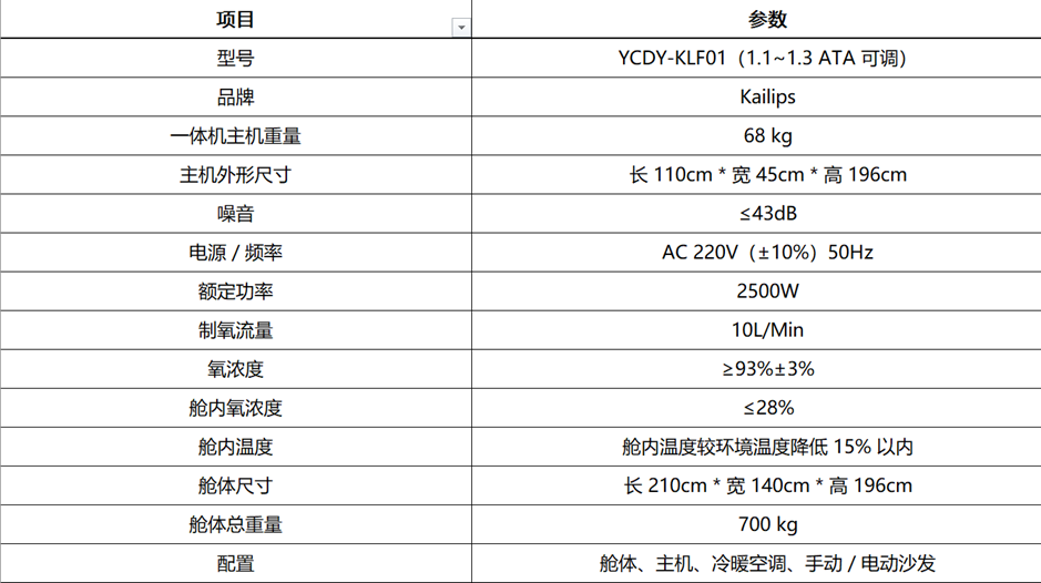 微压氧舱系列 YCDY-KLP01 家用微高压氧舱由高强度医用级材料制成的室体(包括安全门、观察窗、安全阀)、高压富氧发生器和气路组成。它配备了座椅、娱乐系统和阅读桌等各种配件。作方便简单,为用户提供最大的舒适和安全体验。